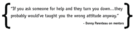Donny enjoys mentoring up and coming artists, and has this to offer: “Follow your gut. Keep your passion and desire focussed. Don’t believe the hype people tell you - just believe in yourself. And don’t treat it like a hobby - you get out of this business what you put into it.”