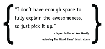 The Blood Lines’ debut album is available through MapleMusic’s distribution outlet, although through online distribution only. When asked whether Maple has approached them about furthering their working relationship or vice versa, the band doesn’t reveal much, saying that they "are talking with a few labels." Maygen summarizes their various answers by saying, “We are amassing a team that we trust.”