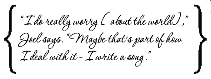 “I do really worry [about the world],” Joel says. “Maybe that’s part of how I deal with it - I write a song.”