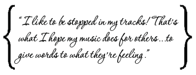 She has a few songwriting aids that help define her own unique writing approach. She calls herself a “silent person”; while she says she doesn’t listen to much music, it is only because she prefers to make time for a fully-formed listening experience, where she can put an album on, lay in the middle of the floor, and “let the emotions overtake me.” She wants to feel, and wants others to “truly feel” her music when listening. When the music does overtake her, it completely absorbs her being. “I can’t focus on anything else, at that point!” Her writing approach comes from a similar emotional grounding. She finds a niche time to write: “I’m pushed to the brink of boredom to write a song.”