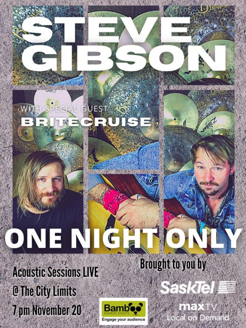 Even with the recent restrictions and lock downs we are still able to go ahead with the concert!! And I’m proud to announce that Sasktel maxTV will be there to record the whole thing and air it on a two part show in front of a live audience, highlighting the struggles the music, entertainment and bar/restaurant industries are dealing with in these troubled times. Obviously we will be following all restrictions and regulations for everyone’s safety. All original music, up close and personal concert with Steve Gibson and special guest Britecruise at the City Limits in Yorkton. It's gonna be a good time and a good way to safely make some noise in 2020! First come first serve to the limited seating. See you there!