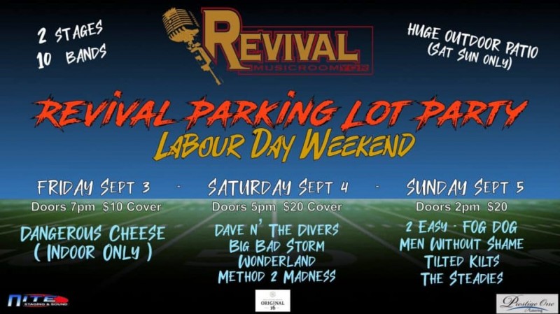 Revival Parking Lot Party! Labour Day Weekend! 10 Bands over the weekend - Huge Outdoor Patio.