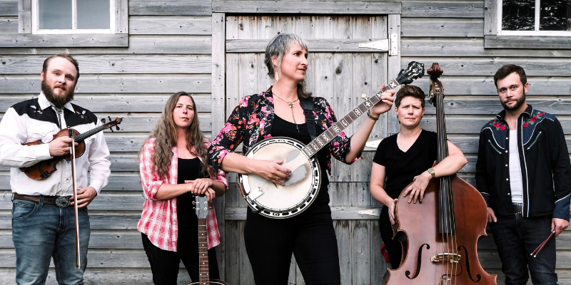 Everything about Eliza Doyle’s music rings of an authenticity that takes you straight to the beating heart of folk and bluegrass music. Eliza has released 9 albums, won numerous awards, and toured North America and Europe. Her 15-year career includes performances in groups, as a solo artist, and as a session musician – singing, playing banjo, dobro, and mandolin. Whether creating a driving rhythm to hold a track together or shucking and plucking some leads to jump to the front of a song, Eliza has the versatility to go from beautiful and melodious songs to a full-blast bootstompin’ hoe down. Her strong, but wonderfully frayed voice belts out captivating tunes and harmonies. The band feature Paula McGuigan (upright bass), Liza Holder (acoustic guitar), Mitch Dureault (fiddle), and Dustin Olmsted (drums).