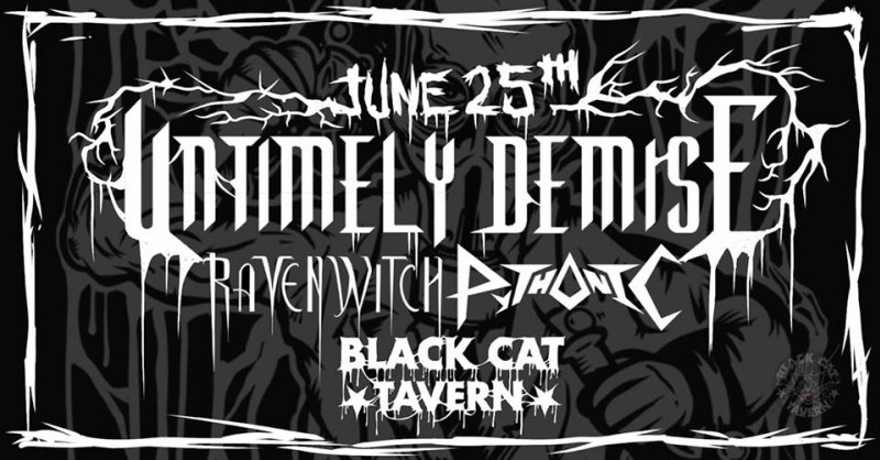 Untimely Demise w/ Raven Witch & Pythonic Who PythonicRaven WitchUntimely Demise When June 25, 2022 Where Black Cat Tavern 801 Broadway Ave, Saskatoon, SK, CA Links fb.me/e/4Ry0mNpvq Back to Events