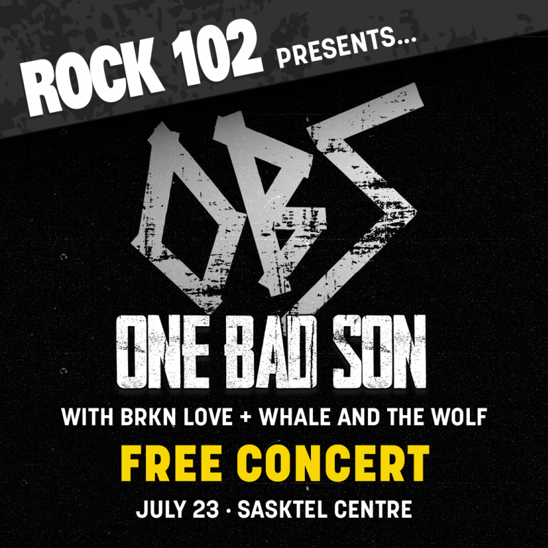 Saskatoon's One Bad Son will perform at SaskTel Centre on July 23 with BRKN Love and Whale and the Wolf.