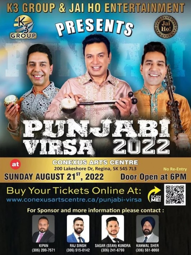 Punjabi Virsa 2022 Who Punjabi Virsa When August 21, 2022 - Doors at: 6:00pm Where Conexus Arts Centre 200 Lakeshore Dr, Regina, SK, CA Links www.conexusartscentre.ca/punjabi-virsa Back to Events