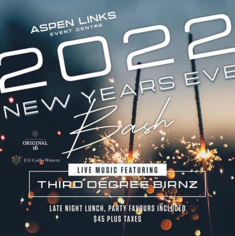 NYE bash featuring Third Degree Birnz, late night lunch and party favours included, $45 plus tax.
