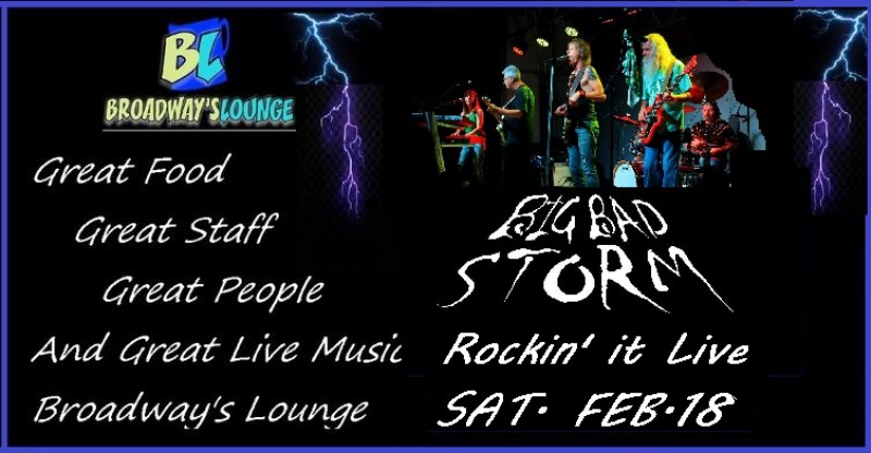 Come out and party with the folks at Broadway's Lounge and Western Pizza on Saturday, February 18th! Happening at 9pm. Featuring artist Big Bad Storm! Join us for great food, great staff, great people, and amazing live music!