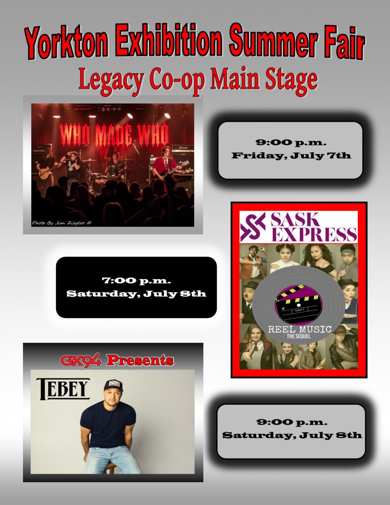 The best part is all of this entertainment and more is FREE with your paid gate admission! Advance tickets are on sale and can be purchased at the Yorkton Exhibition office, Legacy Co-op Yorkton Gas Bars and Food Store, Legacy Co-op Kamsack Gas Bar and Legacy Co-op Churchbridge Food Store.