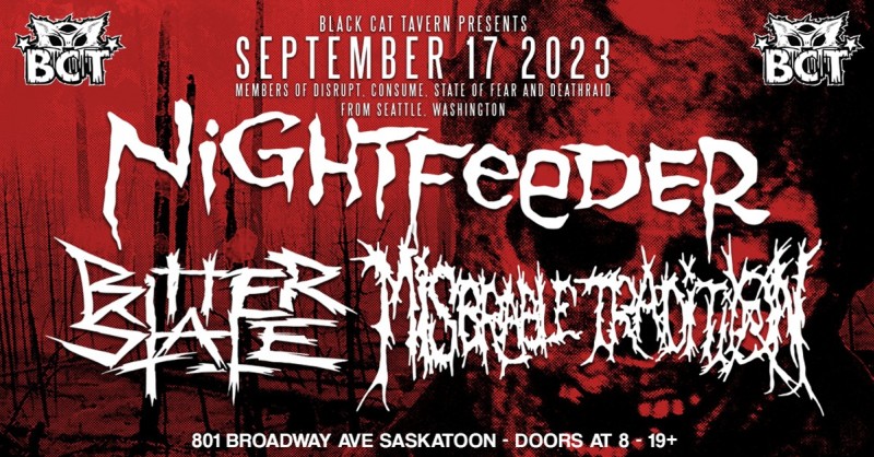 Black Cat Tavern presents: Nightfeeder w/ Bitter State and Miserable Tradition on September 17th @ 8pm.
