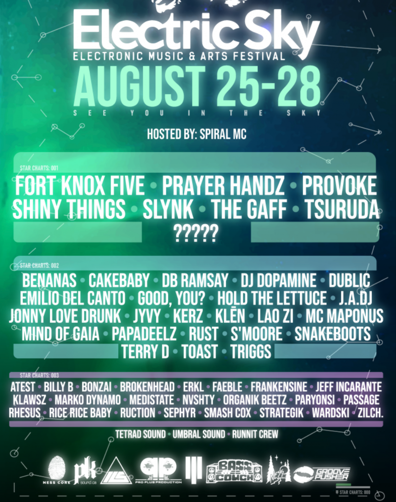 Electric Sky is thrilled to be presenting the 2023 edition of Electric Sky Music & Arts Festival! Electric Sky is an inclusive electronic music festival nestled in the boreal forest of northern Saskatchewan. You can buy your tickets for the August 25th-28th festival HERE.