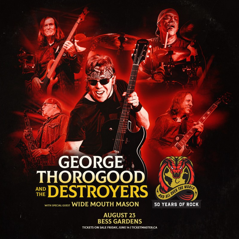 GeorgeThorogood and The Destroyers, which formed in 1973, has been a mainstay on the live music circuit since the late 1970s, cultivating a fanbase that was eager to embrace blues-inflected rock and rock-inflected blues. Via a succession of albums, including the 1977 eponymous debut, 1982's "Bad to the Bone" and 1985's "Maverick," the group became a staple on radio during the album-oriented format that preceded MTV and classic rock. With iconic hits such as "Get A Haircut," "I Drink Alone," "One Bourbon, One Scotch, One Beer," "Move It On Over," "Who Do You Love" and the definitive anthem "Bad To The Bone," Thorogood and his long-time band – Jeff Simon (drums), Bill Blough (bass), Jim Suhler (guitar), and Buddy Leach (saxophone) –continue to captivate audiences like no other. Their legendary status is underlined by the fact that they remain one of the most remarkable live acts in the world.