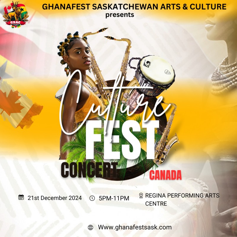 Culture Fest Concert Canada When December 21, 2024 - Showtime: 5:00pm Where Regina Performing Arts Centre 1077 Angus St, Regina, SK, CA Links www.ghanafestsask.com/events Theme: Echoes of Ghana Back to Events