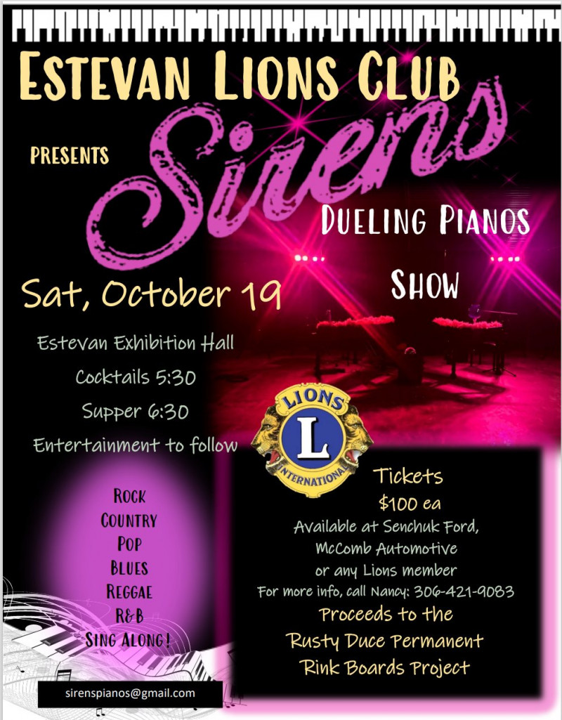 Estevan Lions Club presents Sirens Dueling Pianos Show