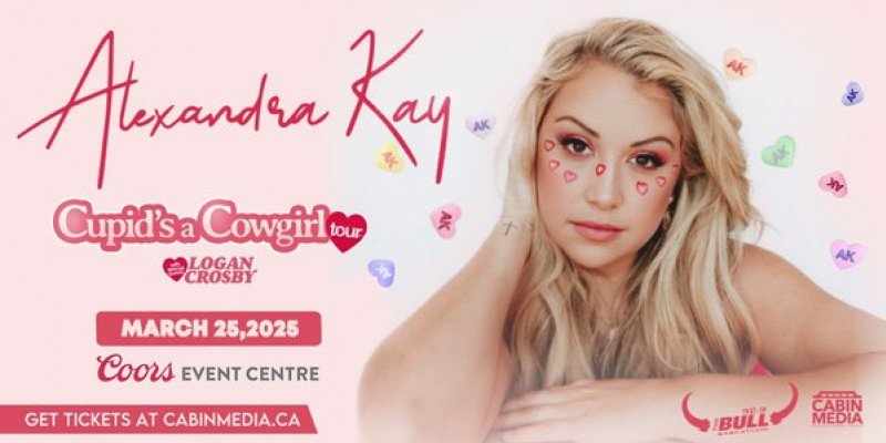 ALEXANDRA KAY When March 25, 2025 - Showtime: 7:30pm Where Coors Event Centre 241 2nd Ave. S, Saskatoon, SK, CA Links www.coorseventcentre.ca/events/ “Cupids a Cowgirl” Tour w/ LOGAN CROSBY Presented by: Cabin Media Entertainment Group Back to Events