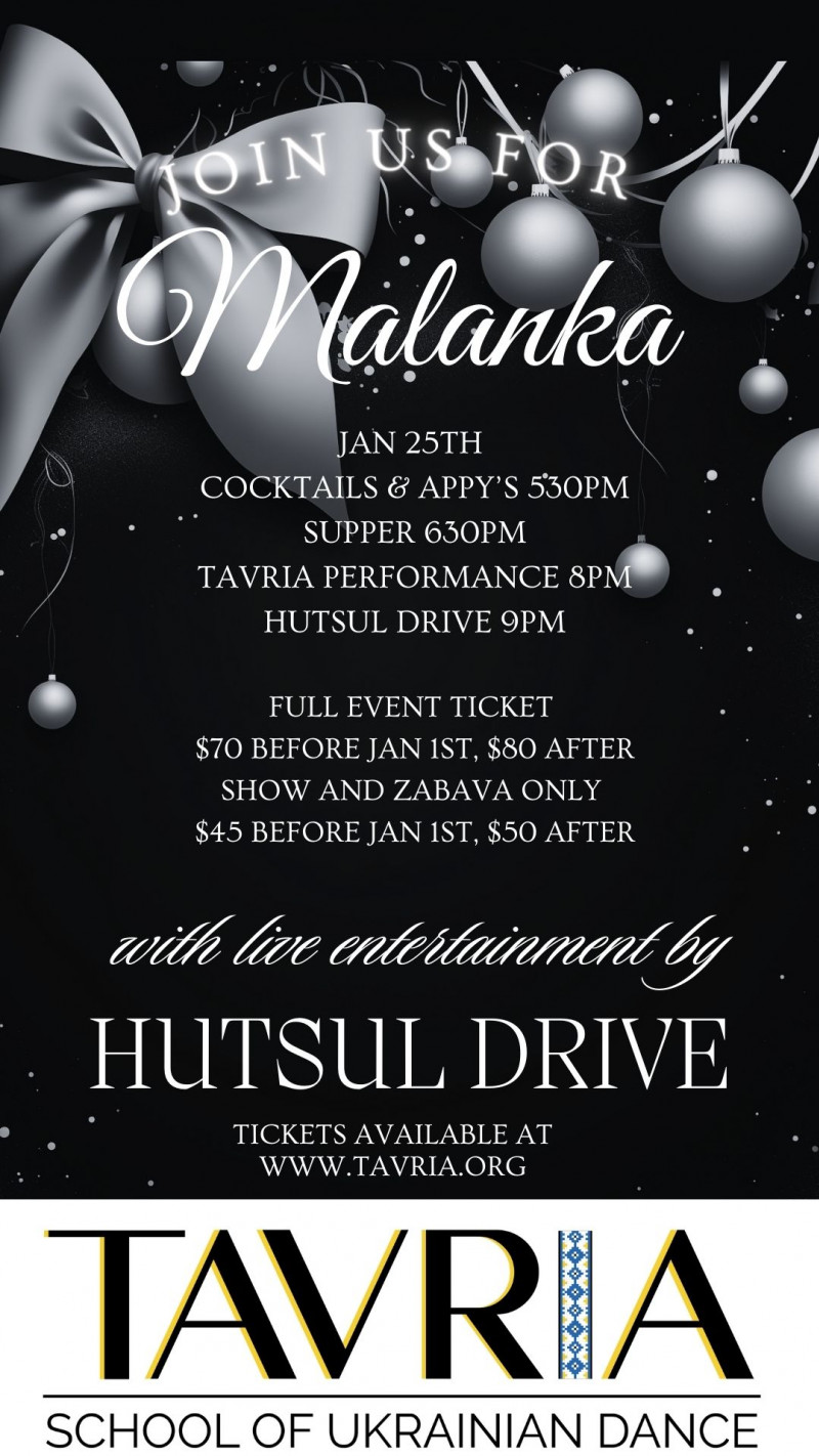 Zabava with local Ukrainian Party Band Hutsul Drive to follow 9pm