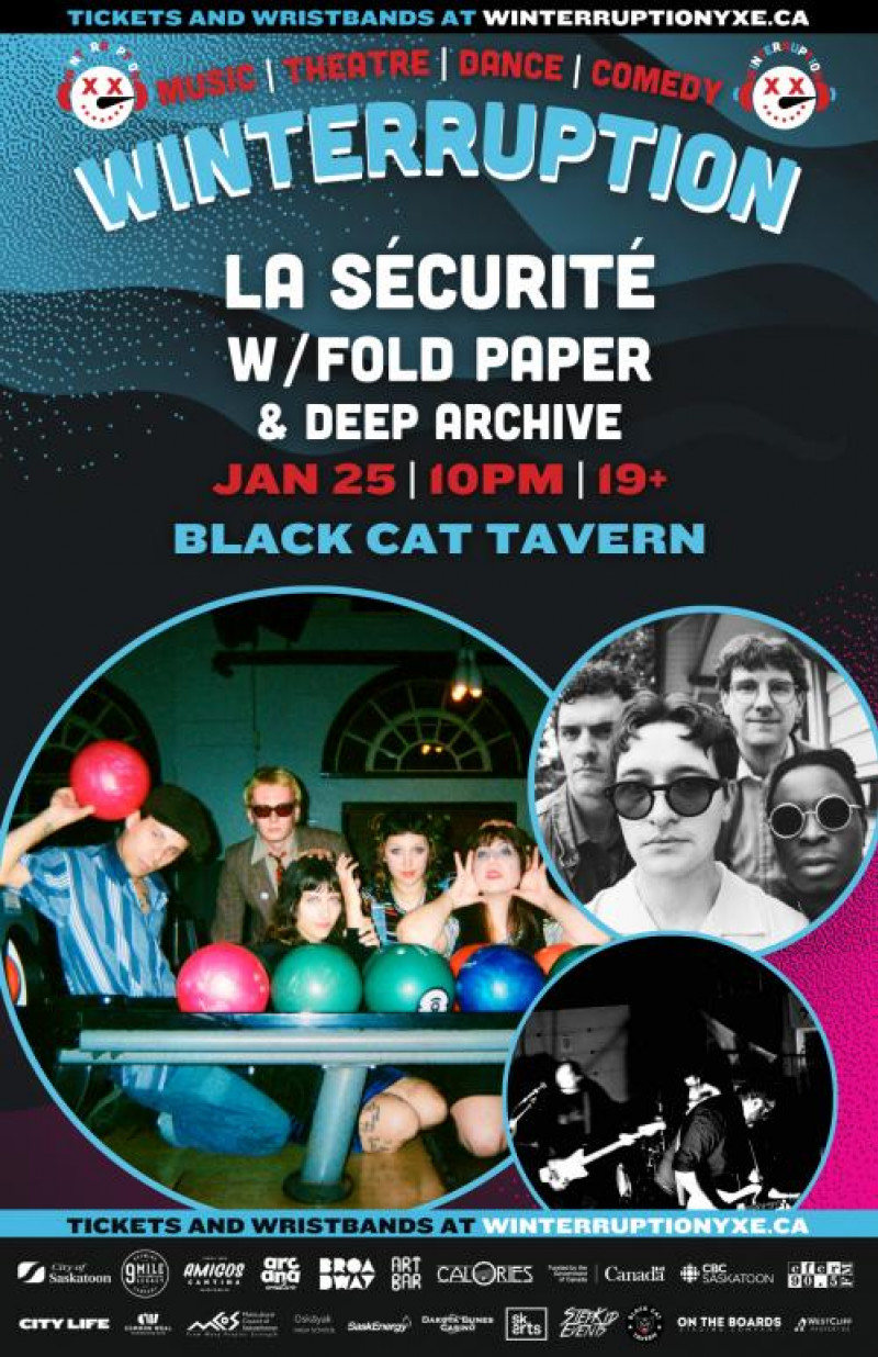 La Sécurité w/ Fold Paper and Deep Archive (Winterruption 2025) When January 25, 2025 - Showtime: 10:00pm Where Black Cat Tavern 801 Broadway Ave, Saskatoon, SK, CA Links broadwaytheatre.ca/events?p=event&event=3207 Back to Events