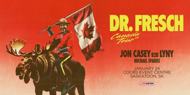 Dr. Fresch, Jon Casey b2b LYNY, Michael Sparks When January 24, 2025 - Showtime: 9:00pm Where Coors Event Centre 241 2nd Ave. S, Saskatoon, SK, CA Links www.ticketmaster.ca/event/11006172BD6F340D Back to Events