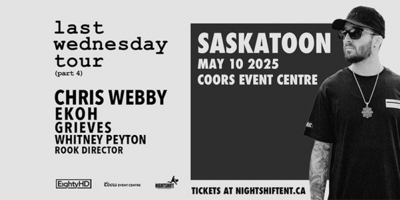 CHRIS WEBBY When May 10, 2025 - Showtime: 7:00pm Where Coors Event Centre 241 2nd Ave. S, Saskatoon, SK, CA Links www.coorseventcentre.ca/events/ Back to Events