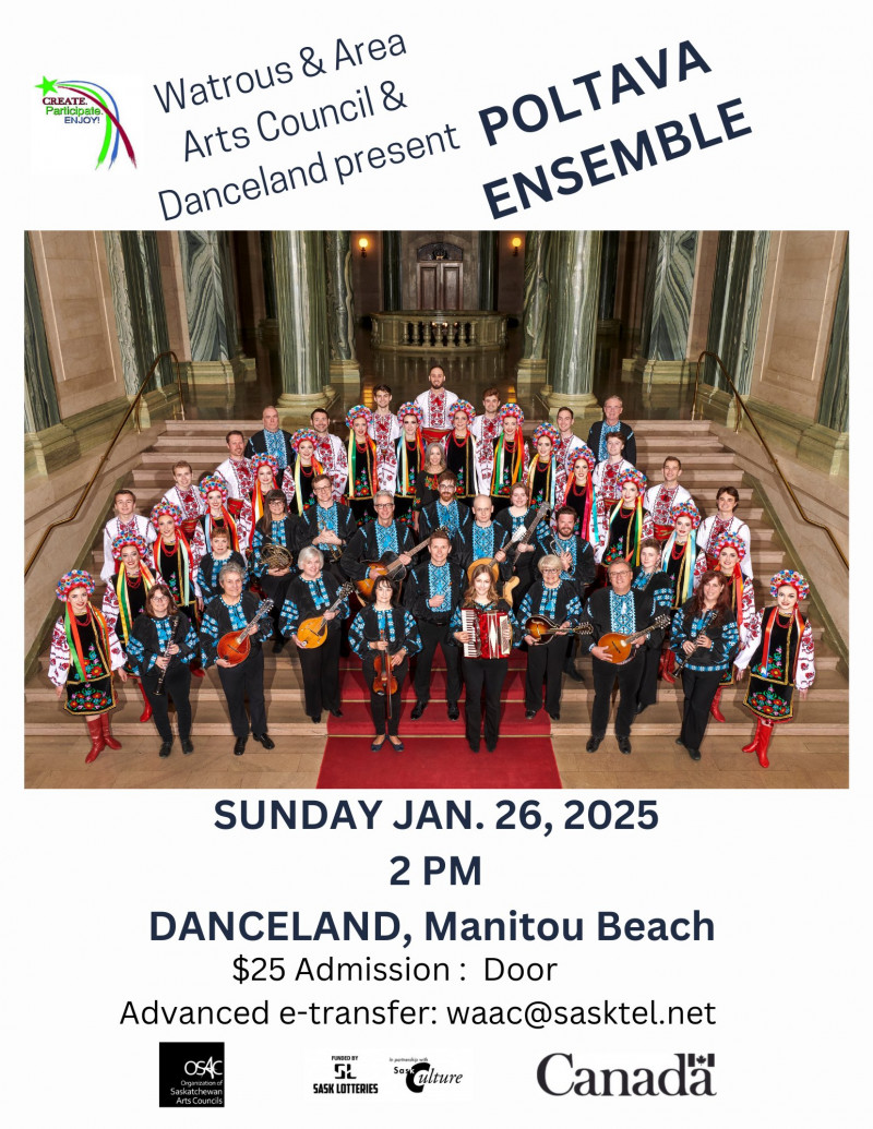 The Poltava Ensemble of Song, Music, and Dance is a 50 member Ukrainian ensemble which includes dancers, musicians and singers.