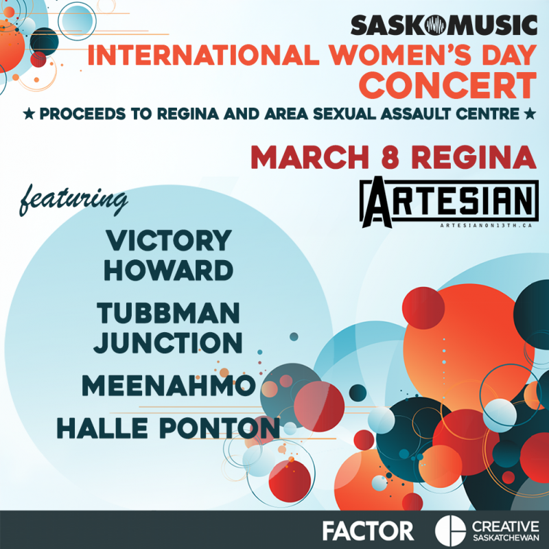 Regina Intl Women's Day Concert/Benefit with Halle Ponton, MeenahMo, Tubbman Junction, Victory Howard