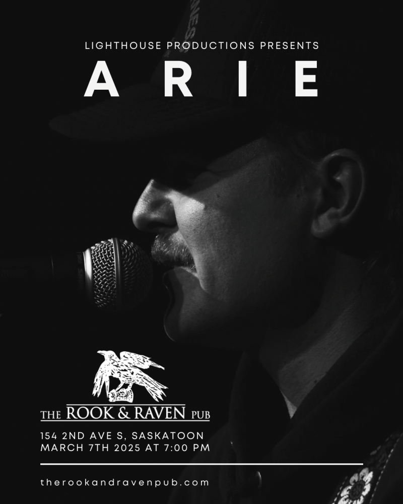 Take in the sounds of ARIE at The Rook & Raven Pub in Saskatoon on March 7th at 7:00pm! Currently shortlisted for 2025 Saskatchewan Album of the Year with his project "Homage", ARIE brings a rich and personal indie-folk sound for a unique and intimate listening experience. The best part- there's NO COVER!
