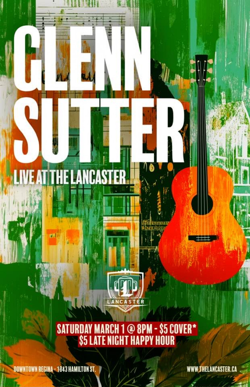 Glenn Sutter Live Who Glenn Sutter When March 1, 2025 - Showtime: 8:00pm Where The Lancaster Taphouse - Downtown 1843 Hamilton Street, Regina, SK Links www.thelancaster.ca/ Working on my solo guitar and piano tunes for this. Back to Events