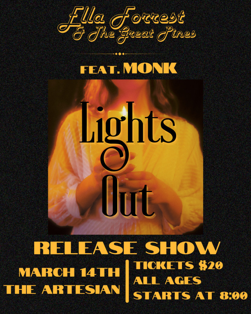 Come celebrate Ella Forrest & the Great Pines' new single 'Lights Out' with a special release show on Friday, March 14th! MONK opens up the night.
