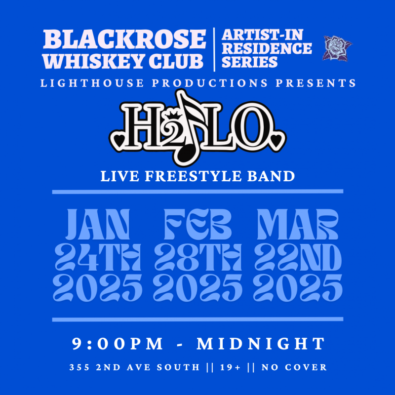 H2FLO will be one of the two bands taking over the Blackrose Whiskey Club Artist in Residency programs to start off 2025! The AIR program encourages artists to get creative with their show arranagements and sets by offering them consistent performance opportunities on a monthly basis. Eliminating the stress of finding/marketing the gig let's artists prioritize improving the show in all aspects!