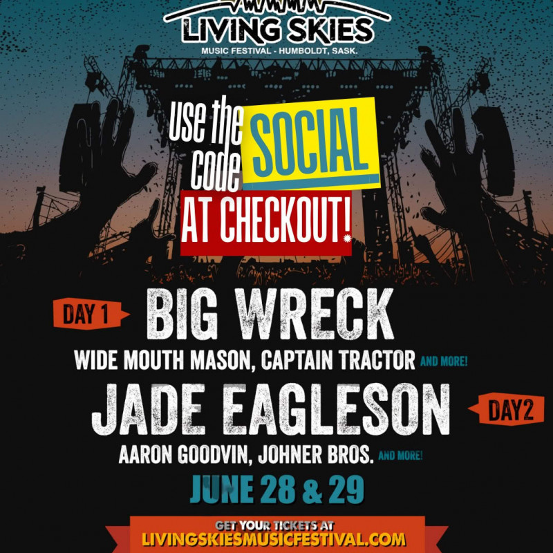 Two days of live music in Centennial Park - Humboldt, SK featuring artists like Jade Eagleson, Big Wreck, Aaron Goodvin, and Wide Mouth Mason, Captain Tractor, Johner Brothers, Brayden King, The Radiant, Bree Taylor, Blu Beach Band, Adam Johnson and East Side of 2nd