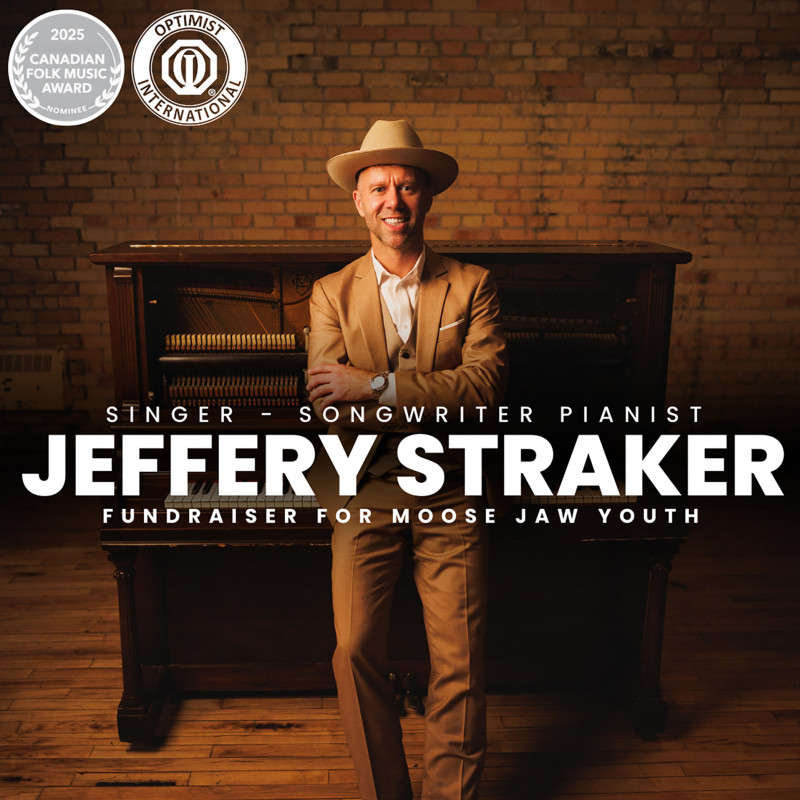 Join us for an unforgettable evening with Canadian award winning singer-songwriter Jeffery Straker, proudly sponsored by the Friendly City Optimist Club. Experience his captivating storytelling and piano-driven folk-pop melodies live at the Moose Jaw Centre for Arts & Culture.