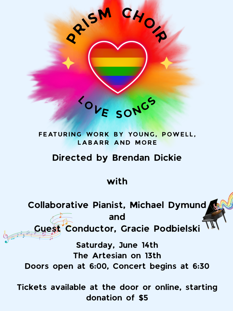 Come and celebrate Pride with PRISM Choir! This year we are celebrating love and family and our music has themes of coming together, stillness and being in community. This year's choral concert features work by Powell, LaBarr and Young!