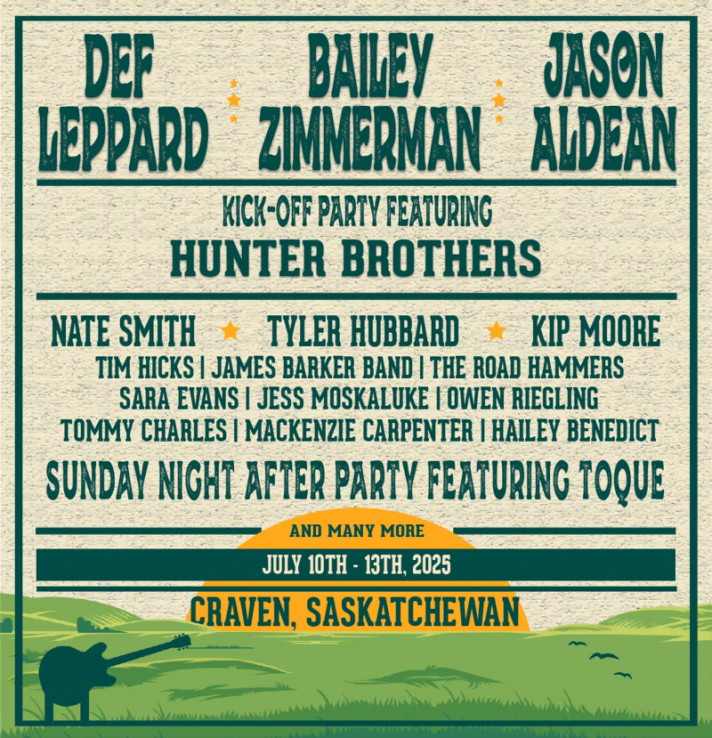 Country Thunder When July 10, 2025July 11, 2025July 12, 2025July 13, 2025 Where Country Thunder Craven , SK, CA Links www.countrythunder.com/sk-lineup Back to Events
