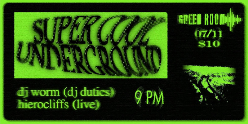 Get ready for a night of dance and sonic exploration at Super Cool Underground! Join us on July 11 at The Green Room for an unforgettable 19+ evening of underground dance music. DJ Worm handle DJ duties, while Hierocliffs delivers an inspiring live set. Expect a interesting mix of house, techno, drum and bass, and other eclectic oddities to ignite the dance floor. Tickets are only $10—grab yours now for a night of music, energy, and pure vibes. Doors open at 9 PM; don’t miss this! Hierocliffs: Hierocliffs creates music that blends a futuristic yet nostalgic aesthetic, deeply connecting with his audience on an emotional level. His sound is shaped by the profound influence of his travels through Eastern regions, an experience that significantly impacted his writing style. This inspiration culminated in the release of his debut EP, Always Forever. Since then, he has released another EP along with several singles, continuing to evolve his sound. Hierocliffs' versatile style spans hyperpop, bass house, techno, and more. Each performance is unique, driven by a constant stream of unreleased tracks and a fresh vision to share with his listeners. https://hierocliffs.bandcamp.com/ DJ Worm: From the deepest and darkest depths of Saskatoon's underground DJ Worm has risen through the filth and detritus to provide YOU with a unique musical experience. Equipped with turntables and an assortment of vinyl records ranging from left field oddities and soulful house, to sweltering techno and smoked out drum and bass, DJ Worm seeks the spirit of the listener - to enrich and nourish the soul and encourage feelings of gratitude and unity.