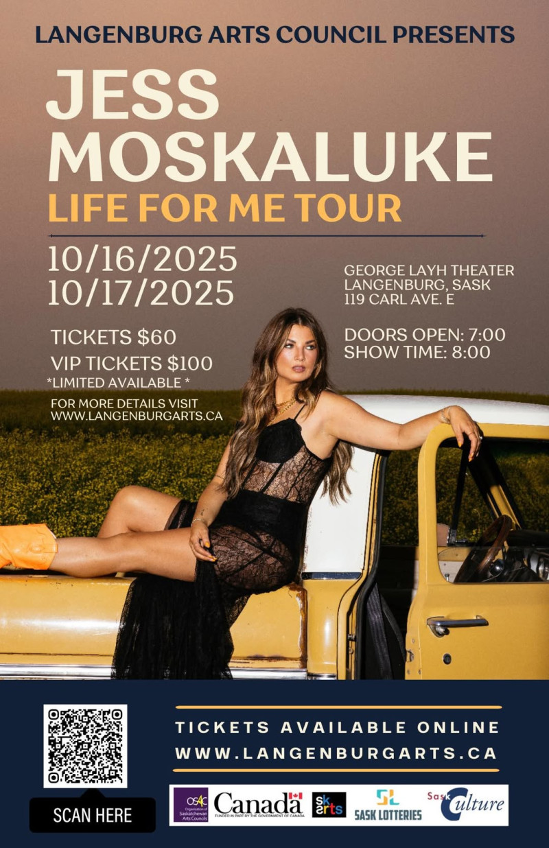 Be inspired by Jess Moskaluke's performance in her hometown! Tickets go on sale this FRIDAY, JULY 18th at 10:00am!!! Tickets sold online at www.langenburgarts.ca