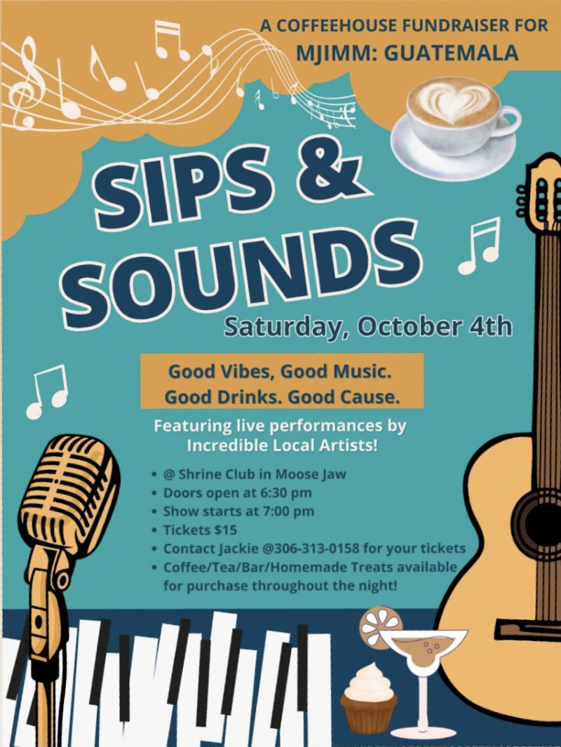 Enjoy an evening of music, community, and sweet treats - while supporting life changing medical care in Guatemala! A Coffeehouse Fundraiser for the Moose Jaw Medical Mission on Saturday October 4th. Featuring Live Performances by Local Artists. Tickets are $15, contact Jackie @ (306)313-0158. Fresh coffee and tea, Bar service available and homemade desserts all night! Located at the Shrine Club in Moose Jaw.