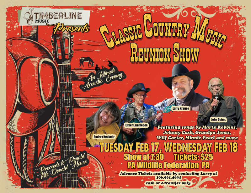 Join the Classic Country Music Show cast 20 years after their last performance. Included are John Quinn, Audrey Neubuhr, Larry Krause and Elmer Lamadee, performing all the country favorites from before 1960.