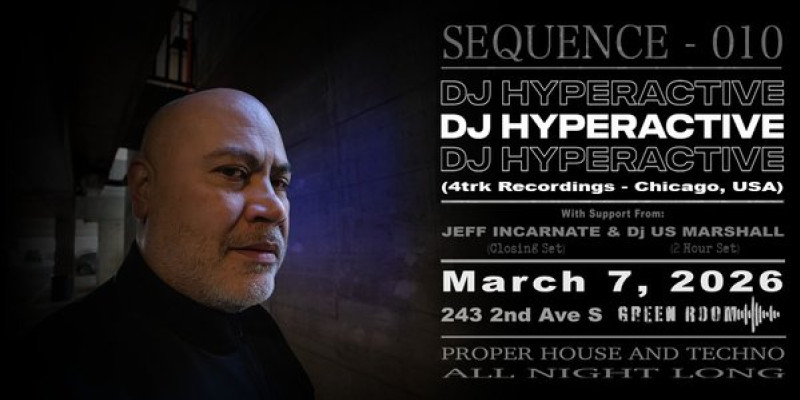 Sequence Clubnights YXE celebrates their 10th event with an absolute legend! Chicago born and bred DJ/Producer Joseph Manumaleuna aka DJ Hyperactive needs little introduce to those versed in the history of techno. Noted as an inspiration to Daft Punk in their track “Teachers” on the album "Homework" and “brother of the humble” according to Resident Adviser, his contributions to the underground continue to span generations. Honing his skills in the highly influential scene and sound of Chicago in the early 90s, DJ Hyperactive gained instant international recognition and has since gone on to play the most legendary and lauded events and venues over the last 20 years, such as Orbit/ Leeds, Liquid Room/ Tokyo, Love Parade/ Berlin, Shelter & Smart Bar/ Chicago, Interface/ Los Angeles, Movement/ Detroit, Basement & Output/ Brooklyn, Tresor & Berghain/ Berlin and the list doesn’t stop there. Also, over the course of his career, he has has produced over 100 remixes and original tracks, including classics such as ‘Venus’ & ‘Wide Open’/ Missile, ‘25HRs’/ Droid, “Music Box”/ 4Trk, “Reptilian Tank” & “Chicago”/Contact, Drop Bass, Communique, Hybrid, Truncate, Figure, Plus 8, CLR, Blank Code, Impact Mechanics, Illegal Alien, to name a few. DJ Hyperactive returned to Chicago 2013 to reconnect with his family and musical roots. His story continues with the difference being the experience and perspective that only a true veteran can possess.