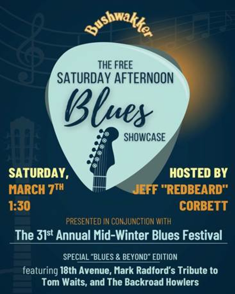 FREE SATURDAY AFTERNOON BLUES SHOWCASE. Presented in conjunction with The Regina Delta Blues Association and The Mid-Winter Blues Festival Week, our Saturday afternoon showcase is a great way to warm up for the festival finale later that evening. Enjoy this special “Blues & Beyond” edition which features three great local live blues acts including: The 18th Avenue Blues Duo, Mark Radford’s Tribute to Tom Waits and The Backroad Howlers. Hosted by Regina’s #1 live music fan, Jeff “Redbeard” Corbett. No cover charge. Plan to arrive early in order to get a good seat!
