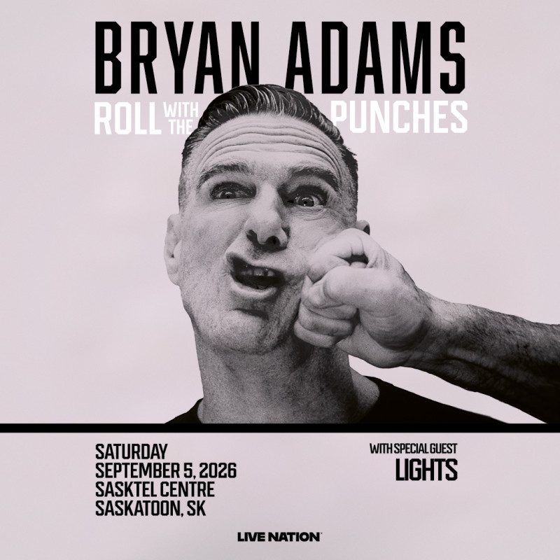 Bryan Adams: Roll With The Punches When September 5, 2026 - Showtime: 7:30pm Where Sasktel Centre 101-3515 Thatcher Ave, Saskatoon, SK, CA Links www.ticketmaster.ca/event/11006449C8D788D2 BRYAN ADAMS EXTENDS THE ROLL WITH THE PUNCHES TOUR WITH SPECIAL GUEST LIGHTS Back to Events