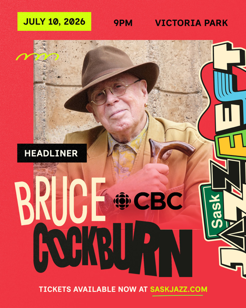 Sask JazzFest When July 10, 2026 - Showtime: 5:30pm Where Victoria Park Saskatoon, SK Links tickets.saskjazz.com/ JULY 10 PRESENTED BY CBC: Bruck Cockburn (9PM) Royal Wood (7PM) Eileen Laverty (5:30PM) Back to Events