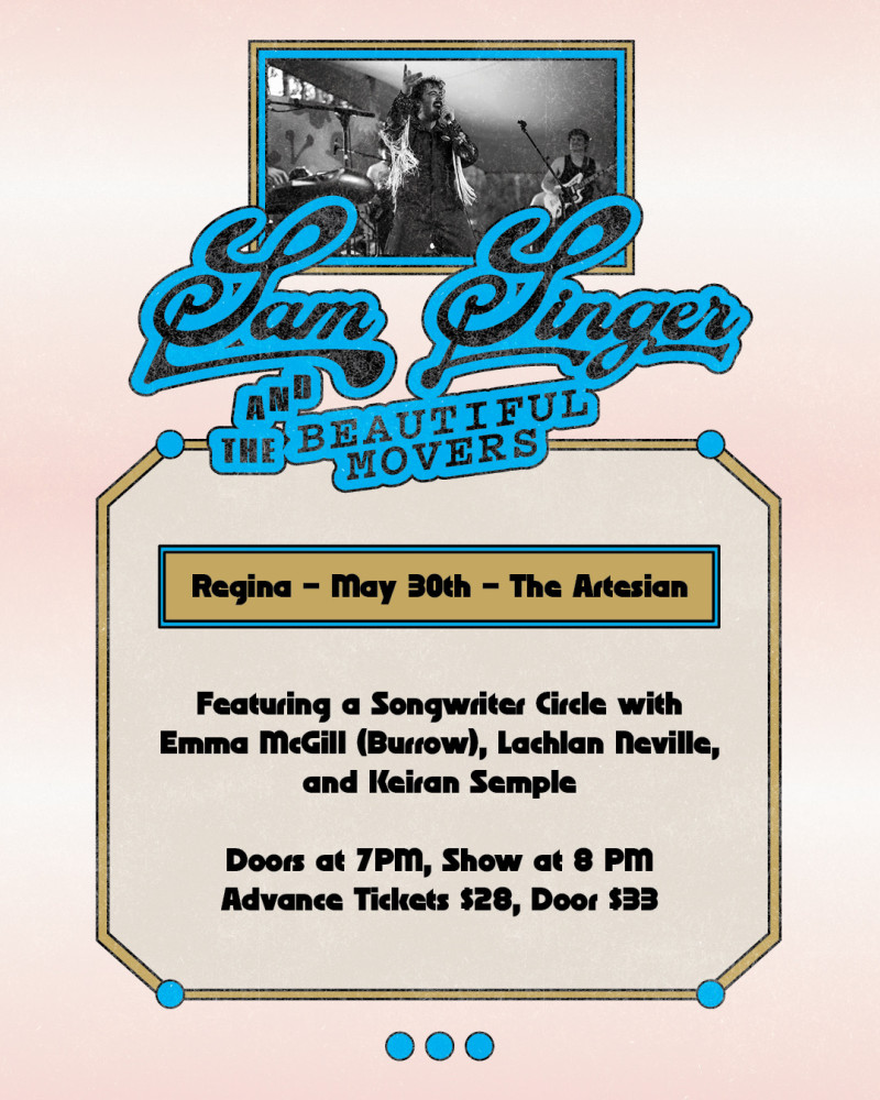 We’re excited to welcome Sam Singer and The Beautiful Movers to the Artesian stage, with a songwriter’s circle opening the night featuring Emma McGill (Burrow), Lachlan Neville, and Keiran Semple.