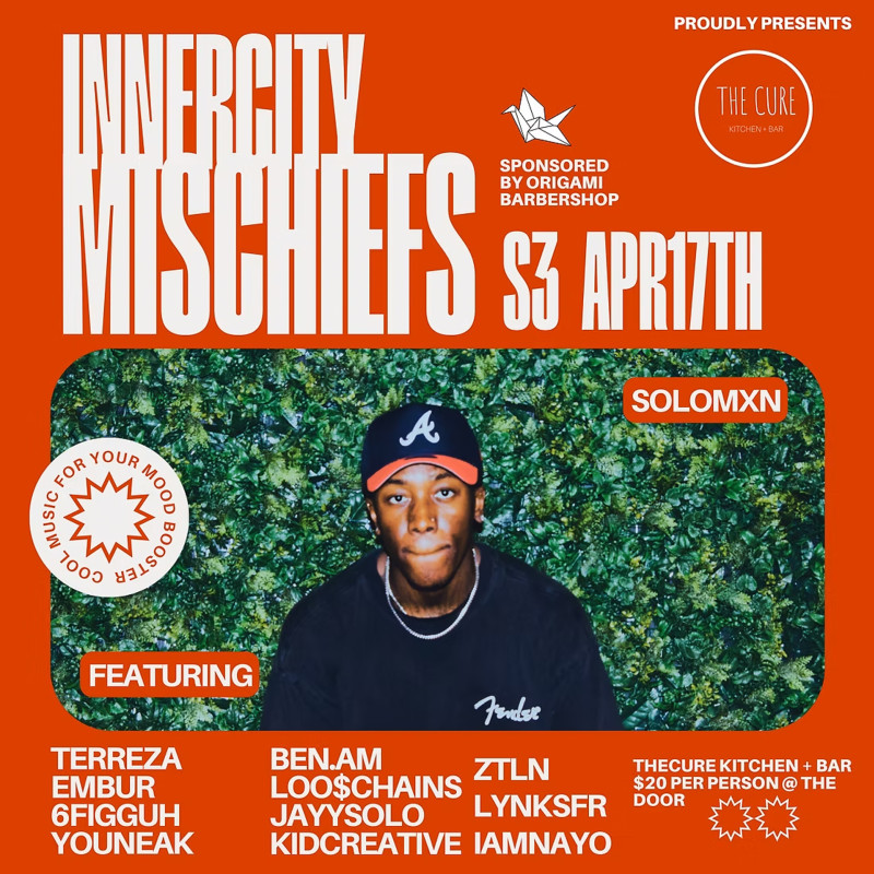 A night of hip hop performances with Solomxn, sponsored by Origami Barbershop.