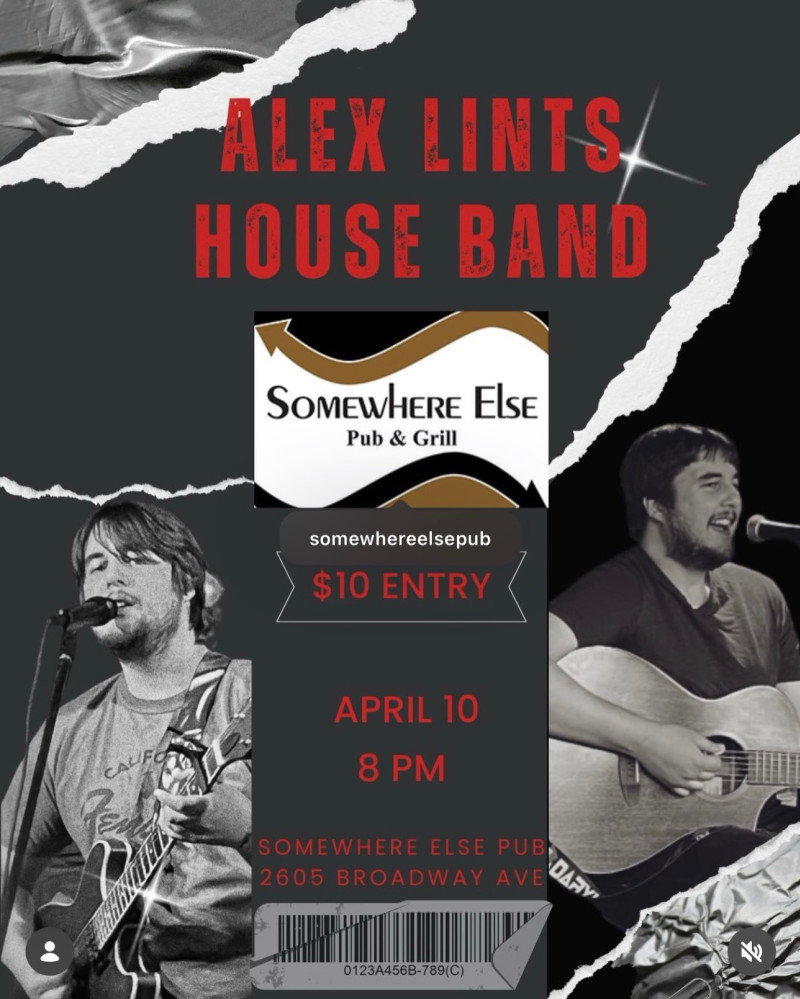 Alex Lints House Band When April 10, 2026 - Showtime: 8:00pm Where Somewhere Else Pub & Grill 2605 Broadway Ave South, Saskatoon, SK, CA Links www.facebook.com/photo/?fbid=1560482726081241&set=pcb.1560482826081231 Back to Events