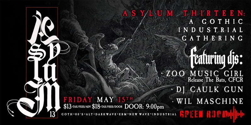 May 15th at Green Room: Get down to drown, dress to depress and dance all your cares away with carefully curated auditory rapture involving the dark 80's, industrial, EBM, goth, new/cold and darkwave selections, respectively.