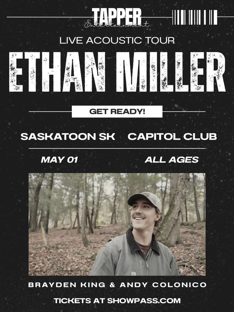 ETHAN MILLER TAKES ON CAPITOL CLUB SASKATOON MAY 1ST FOR A LIVE ACOUSTIC SHOW