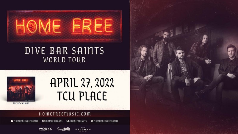 Join us for HOME FREE’s DIVE BAR SAINTS: WORLD TOUR for a perfect evening of mixed of upbeat Nashville-dipped pop hits, country and western standards, incredible harmony and quick witted humor. Music and details on VIP packages available at http://HomeFreeMusic.com.
