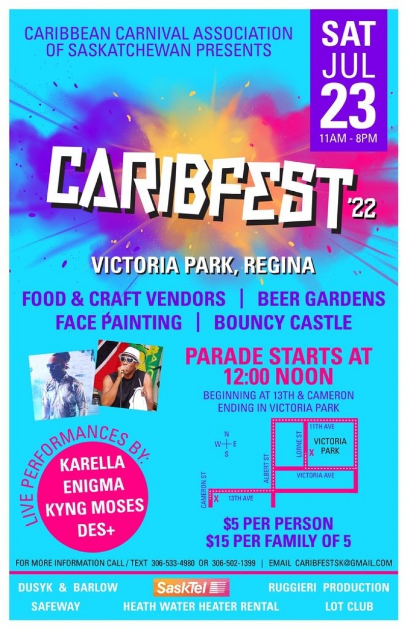Caribfest Who Desmond PaulEnigmaKarellaKyng Moses When July 23, 2022 - Showtime: 12:00pm Where Victoria Park Regina, Saskatchewan, Canada Back to Events
