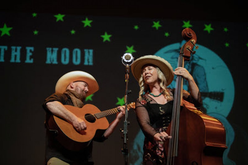 Alberta’s JUNO award nominated “Over The Moon” are totally immersed in real cowboy country. Their music is a wild ride from 40’s western swing and Appalachian old time, to cowboy blues, all featuring their meant-to-be vocals and a wide array of acoustic instruments. Suzanne Levesque and Craig Bignell are both award winning multi-instrumentalists and vocalists. After discovering their near perfect blend of voices, often moving people to tears upon hearing them sing together, they stepped over the threshold and Over The Moon was born. Simple and sweet, their music and lyrics have a common thread that speaks of the Canadian West.