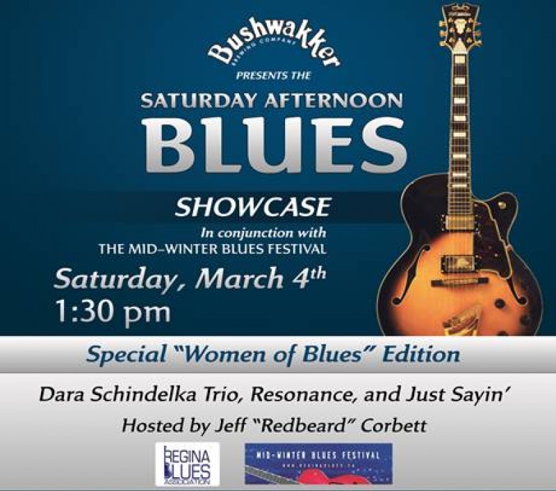 Join Bushwakker for a special "Women of Blues" edition of Saturday afternoon blues! Featuring Dara Schindelka Trio, Resonance, and Just Sayin', the event is hosted by Jeff "Redbeard" Corbett in conjunction with the Regina Mid-Winter Blues Festival! Be sure to enjoy a slice of this annual Bushwakker Blues event dessert, Redbeard's Chocolate Caramel Cheesecake! Happening March 4th @ 1:30pm.